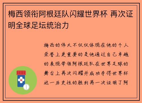 梅西的伟大不仅仅体现在他的个人荣誉上,更...