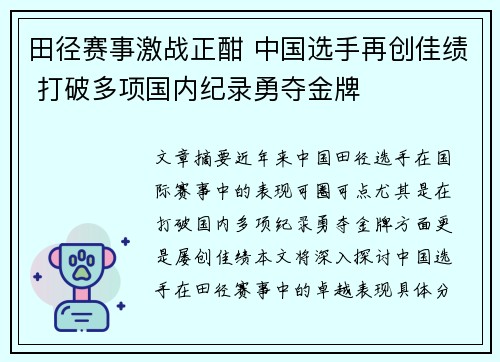 文章摘要:近年来,中国田径选手在国际赛事...
