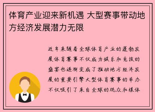 近年来,随着全球体育产业的蓬勃发展,体育...