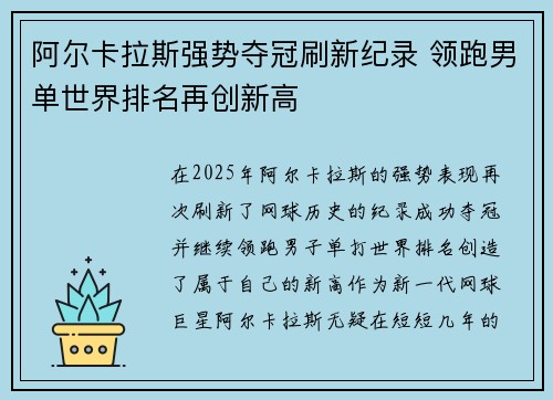 在2025年,阿尔卡拉斯的强势表现再次刷...