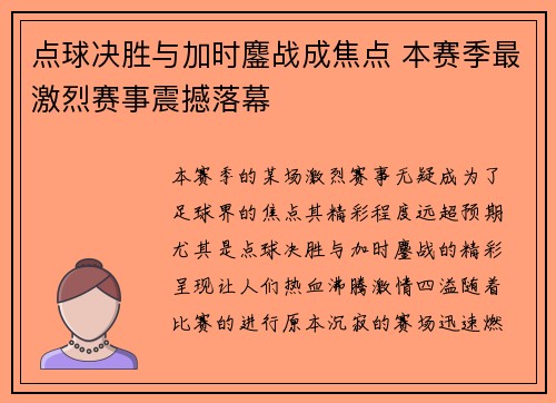 本赛季的某场激烈赛事无疑成为了足球界的焦...