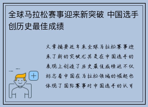 文章摘要:近年来,全球马拉松赛事迎来了新...