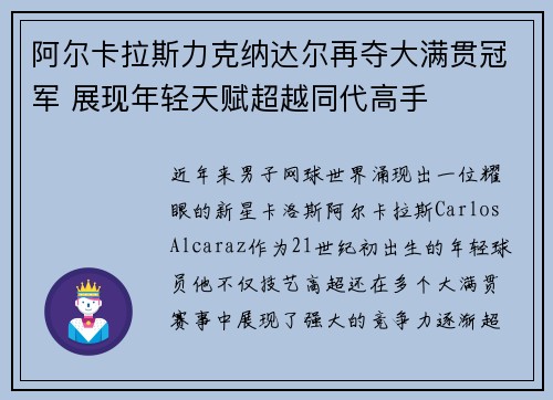近年来,男子网球世界涌现出一位耀眼的新星...