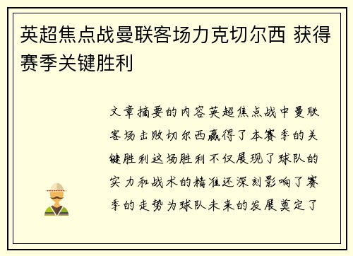 文章摘要的内容:英超焦点战中,曼联客场击...