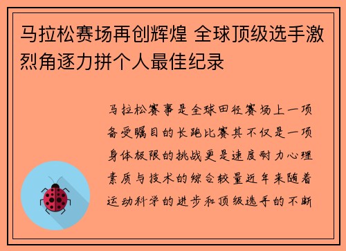 马拉松赛事是全球田径赛场上一项备受瞩目的...