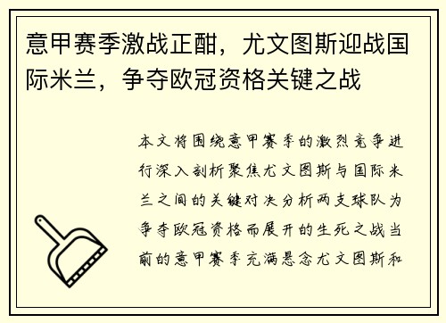 本文将围绕意甲赛季的激烈竞争进行深入剖析...
