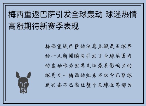 梅西重返巴萨的消息无疑是足球界的一大新闻...
