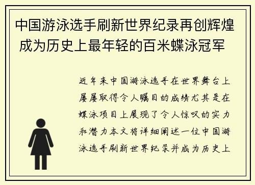 近年来,中国游泳选手在世界舞台上屡屡取得...