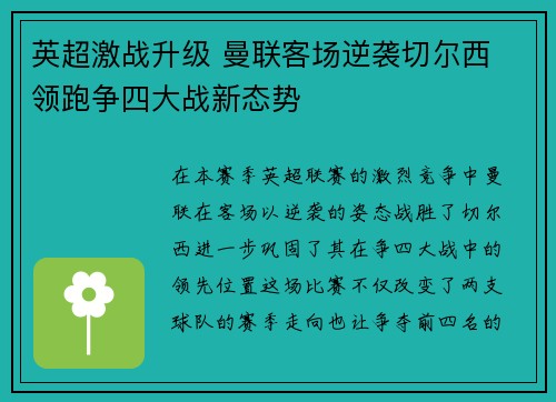 在本赛季英超联赛的激烈竞争中,曼联在客场...