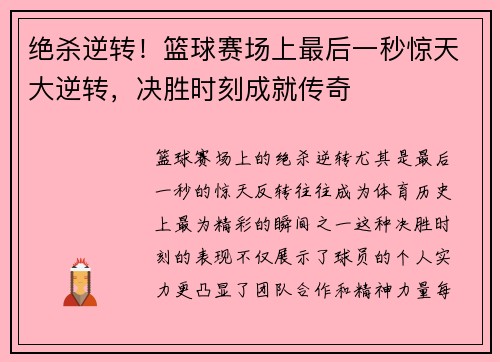 篮球赛场上的绝杀逆转,尤其是最后一秒的惊...