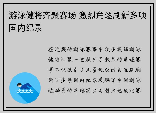 在近期的游泳赛事中,众多顶级游泳健将汇聚...