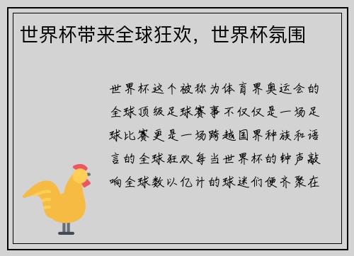 世界杯,这个被称为“体育界奥运会”的全球...