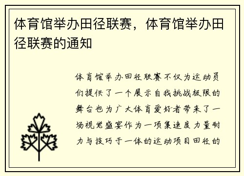 体育馆举办田径联赛,不仅为运动员们提供了...