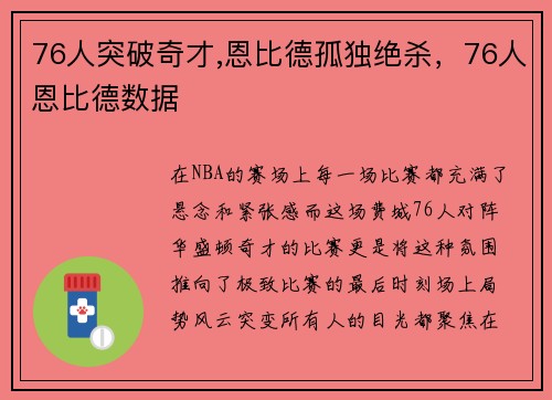 在NBA的赛场上,每一场比赛都充满了悬念...