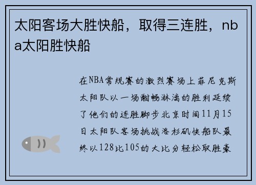 在NBA常规赛的激烈赛场上,菲尼克斯太阳...