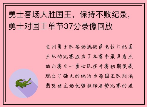 金州勇士队客场挑战萨克拉门托国王队的比赛...
