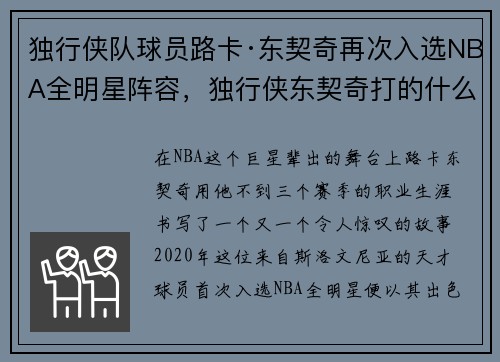 在NBA这个巨星辈出的舞台上,路卡·东契...