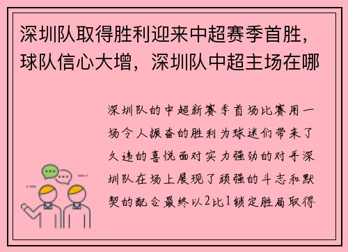 深圳队的中超新赛季首场比赛,用一场令人振...