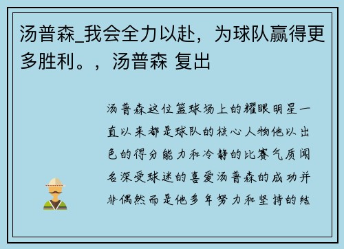 汤普森,这位篮球场上的耀眼明星,一直以来...