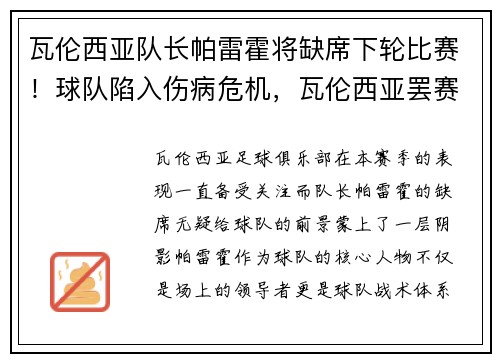 瓦伦西亚足球俱乐部在本赛季的表现一直备受...
